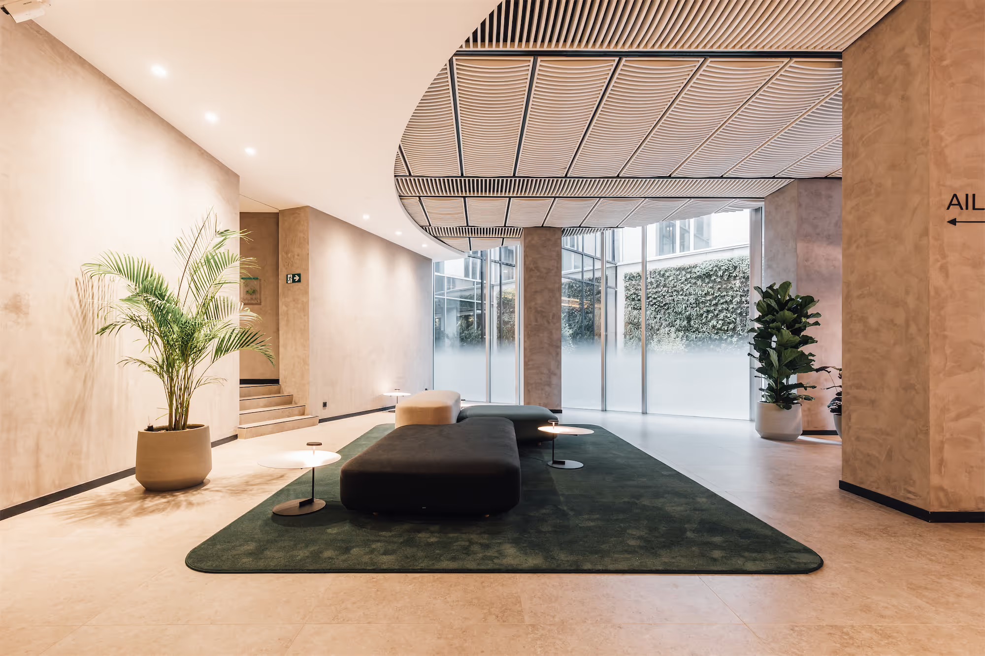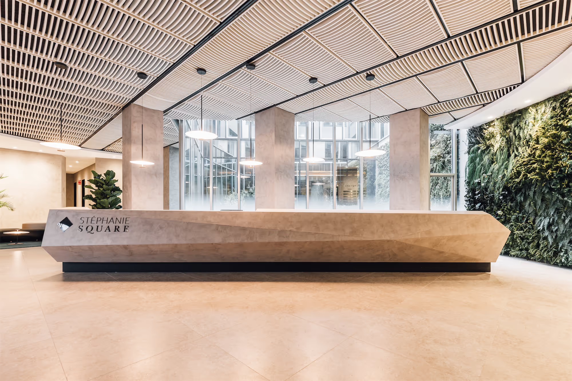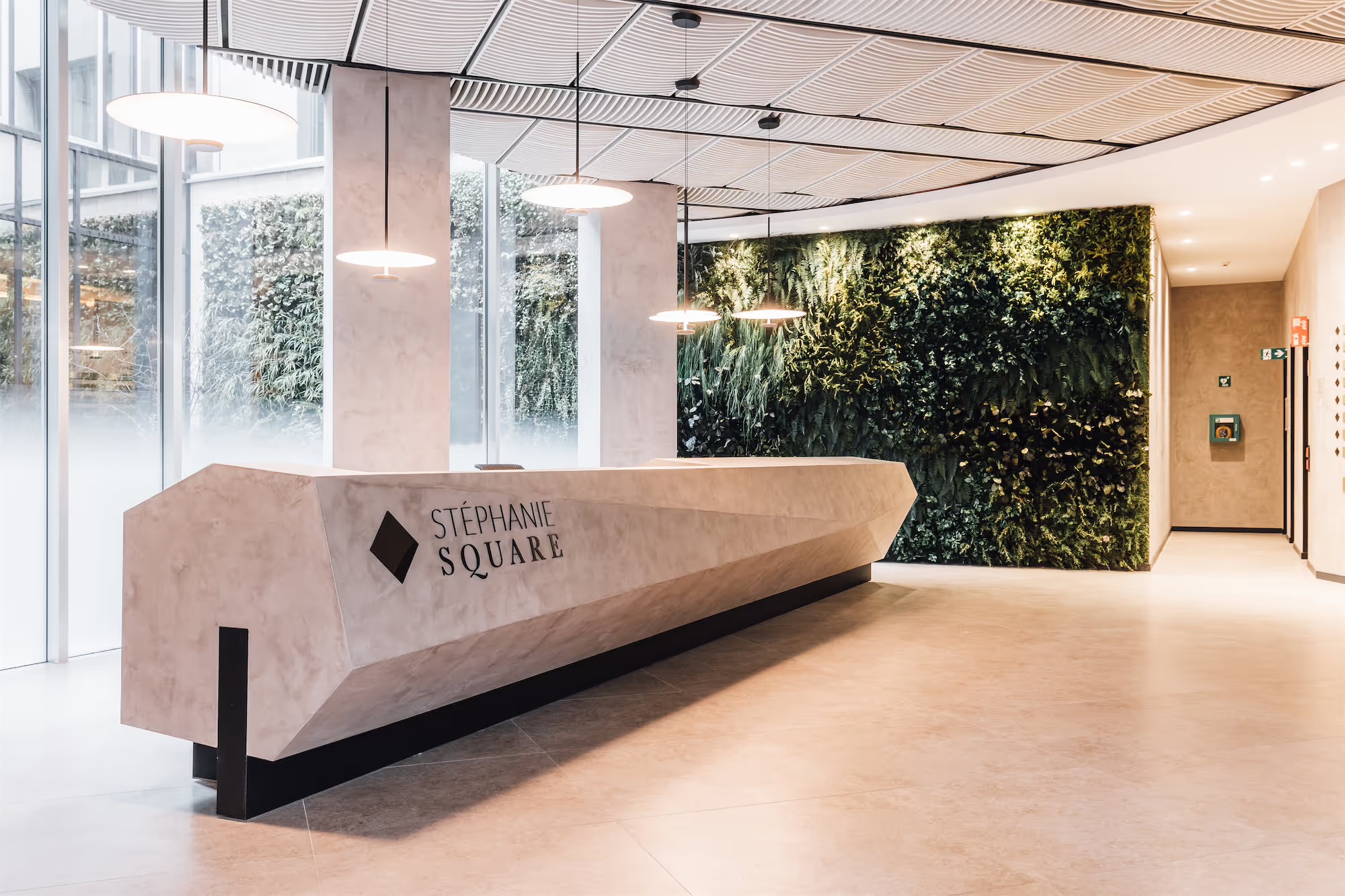 Inspired by the building’s iconic architecture, the entrance lobby has been totally transformed. From the garden-like patio an external green wall continues through to the interior, bringing with it a sense of nature’s renewal and calm.