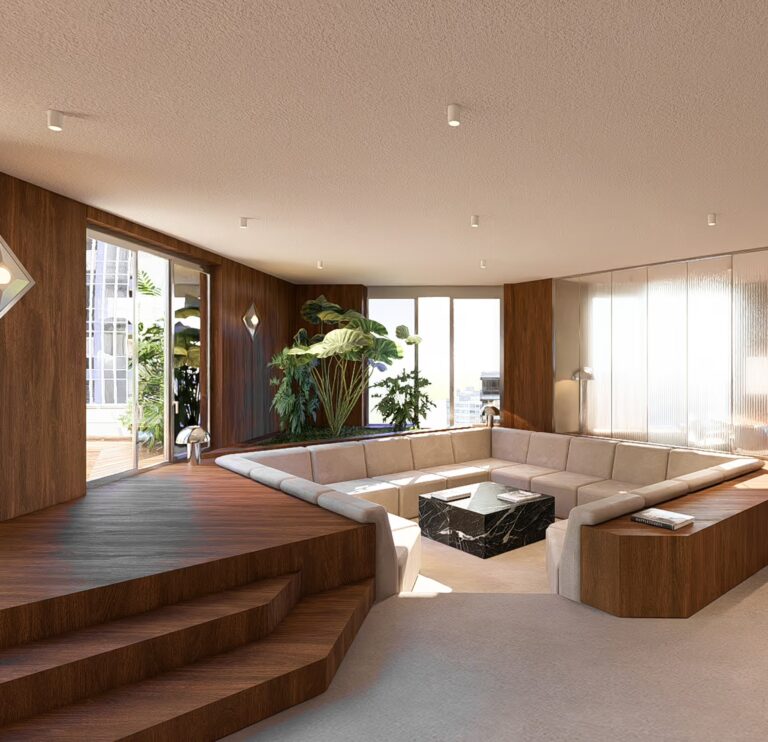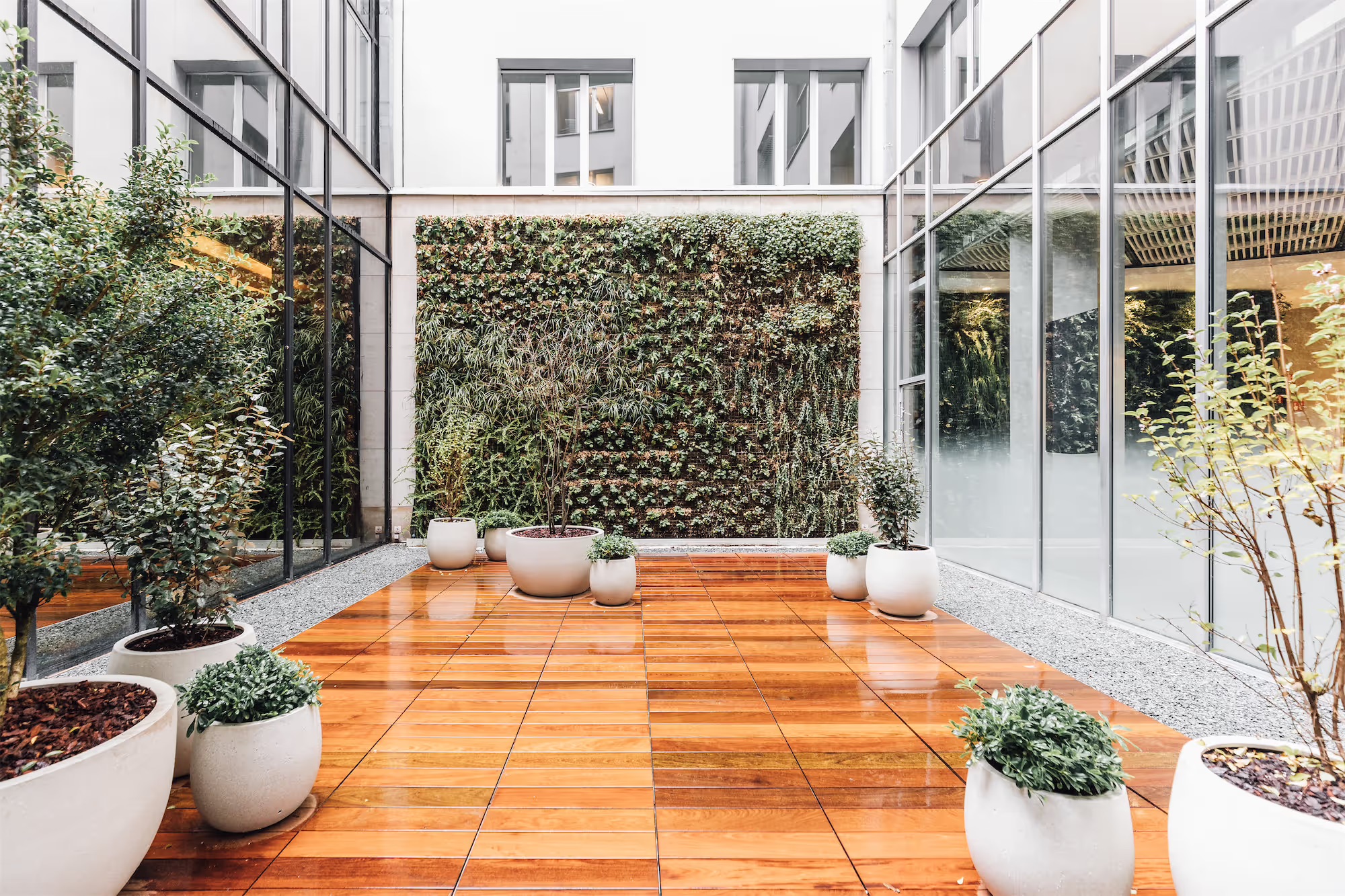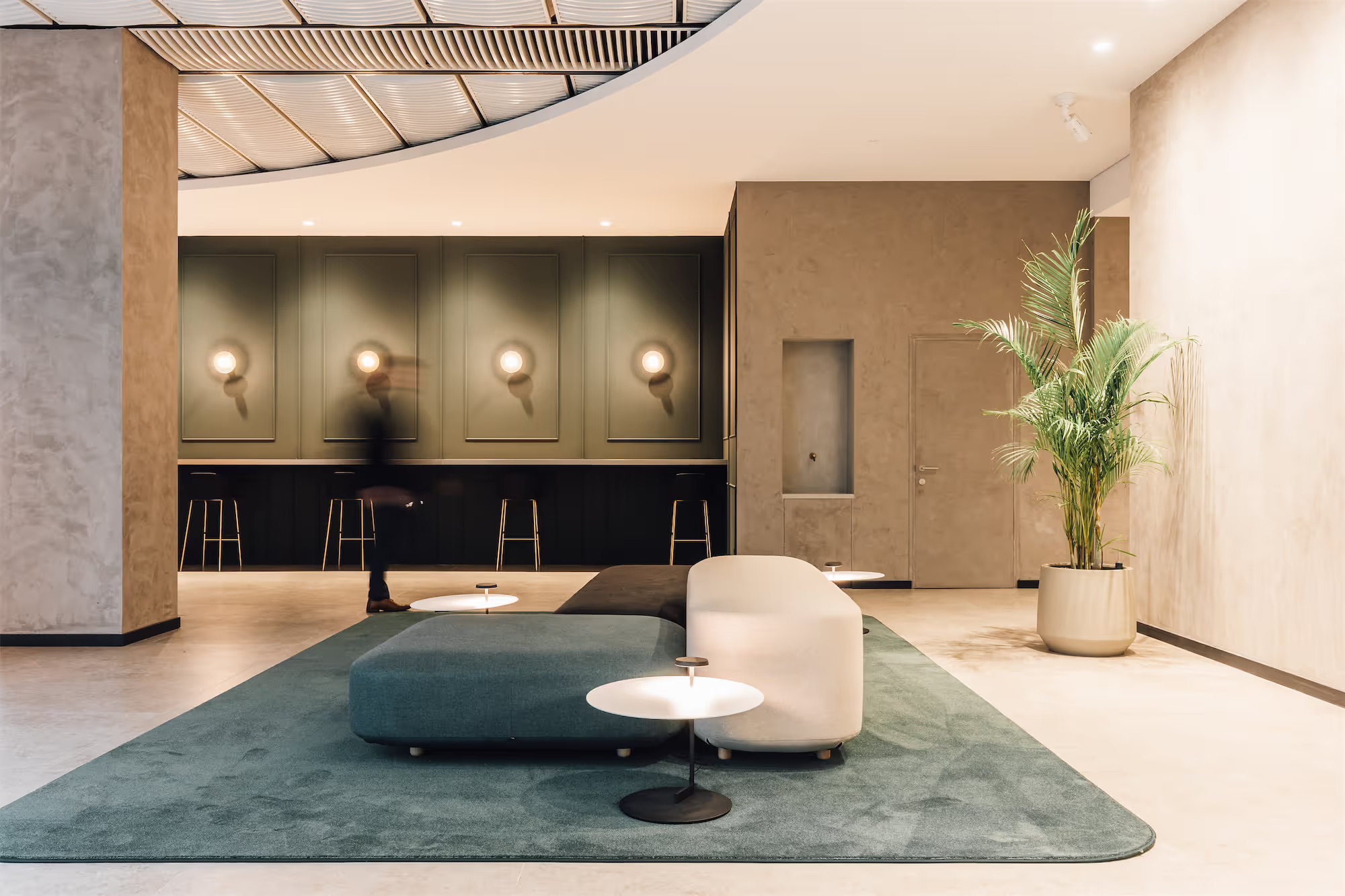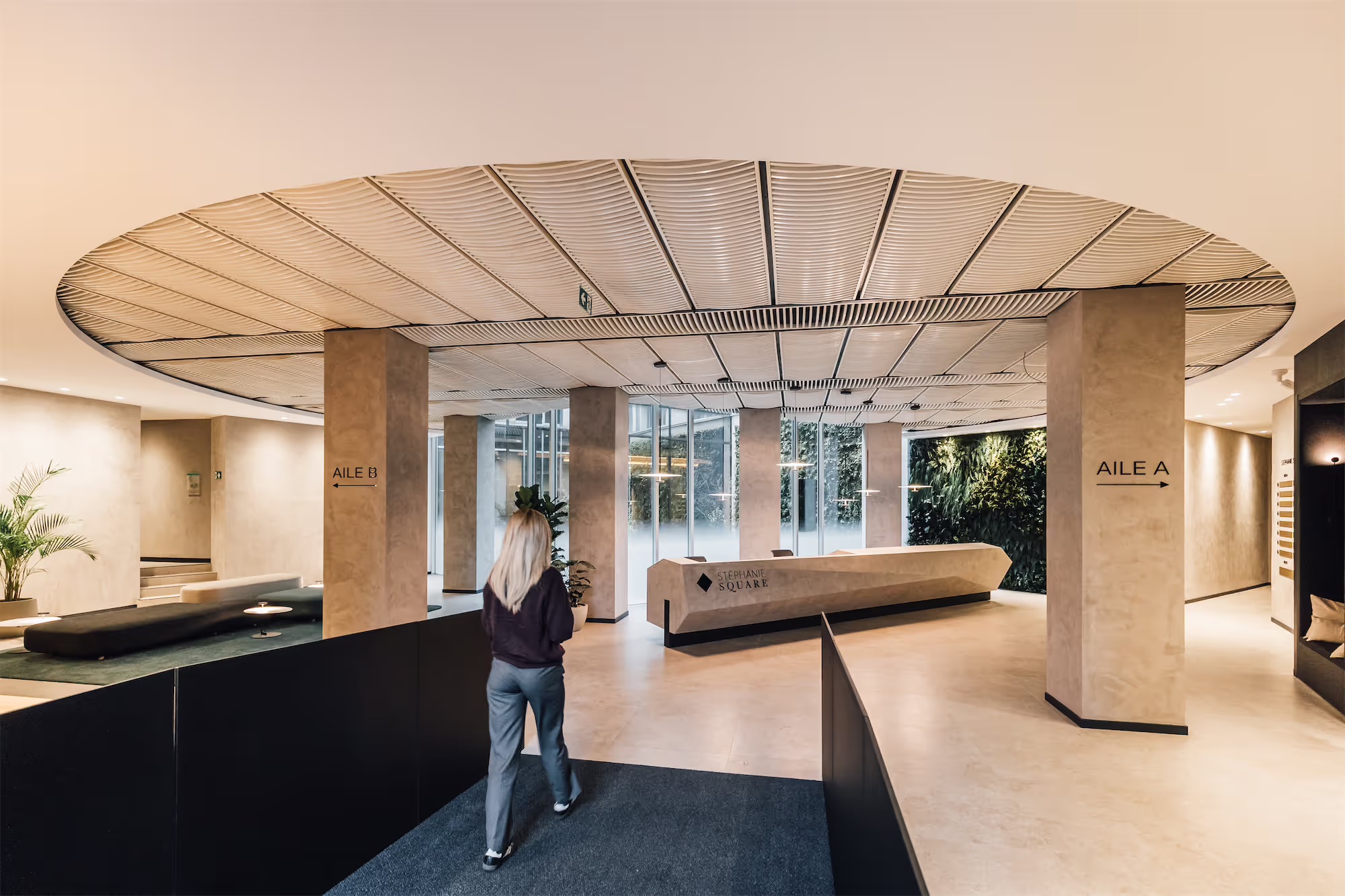 Inspired by the building’s iconic architecture, the entrance lobby has been totally transformed. From the garden-like patio an external green wall continues through to the interior, bringing with it a sense of nature’s renewal and calm.