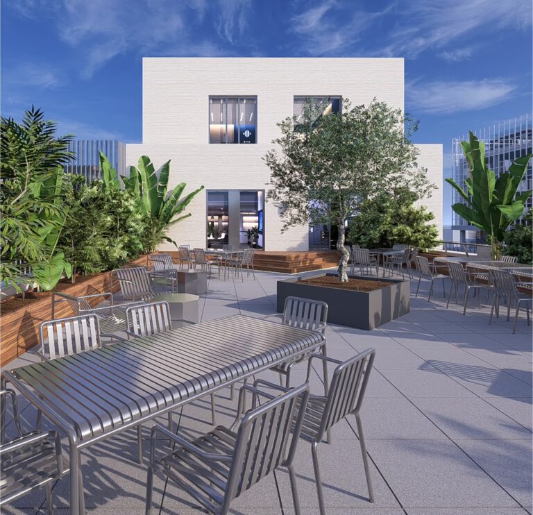 Two exciting renovation projects are in the works for this striking building – a fully reworked reception and a business lounge with adjorning terrace for the exclusive use of the buildings tenants.